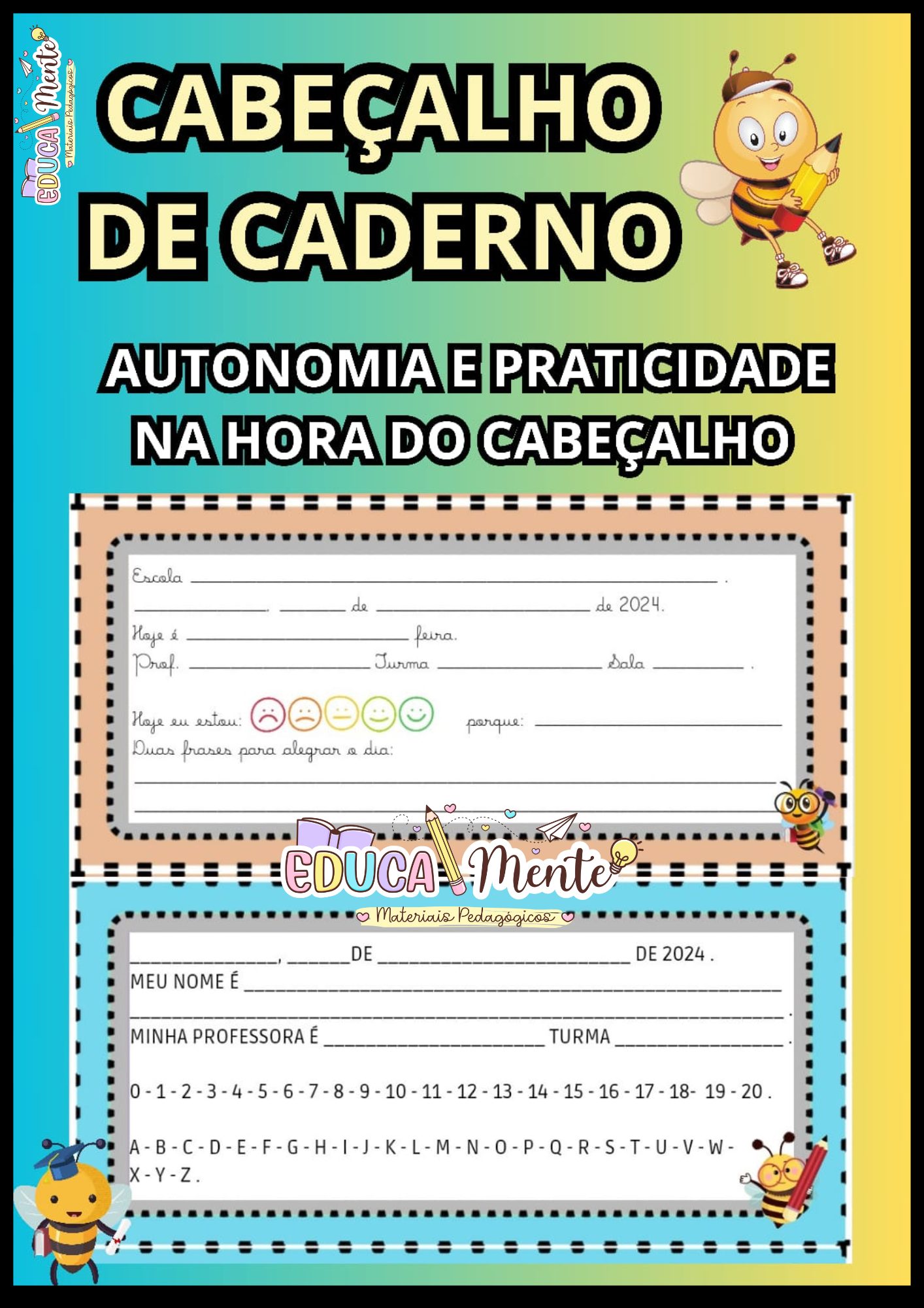 🌟 Sugestão: Imprimir e plastificar e dar para cada aluno levar para casa e trazer o cabeçalho pronto no caderno para o próximo dia de aula.